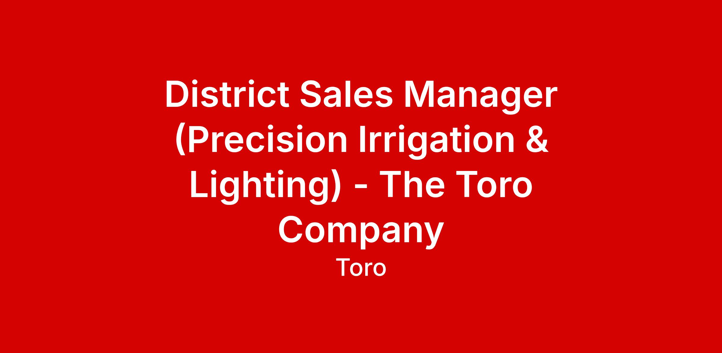The main objectives of this position are to create and grow demand and sales volume beyond market growth rates for Toro Irrigation & Irritrol Irrigation and the Unique Lighting brands, in a specified geography. The District Sales Manager (DSM) will support programs and demand creation sales functions for all brands. By growing territory sales through the distributor channel focusing on contractors and other key influencers.