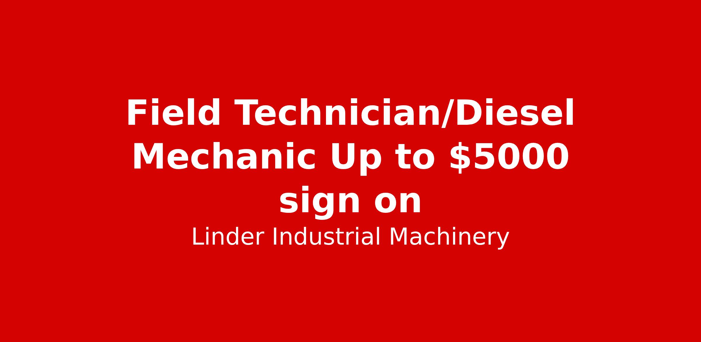 Field Technician/Diesel Mechanic Up to $5000 sign on