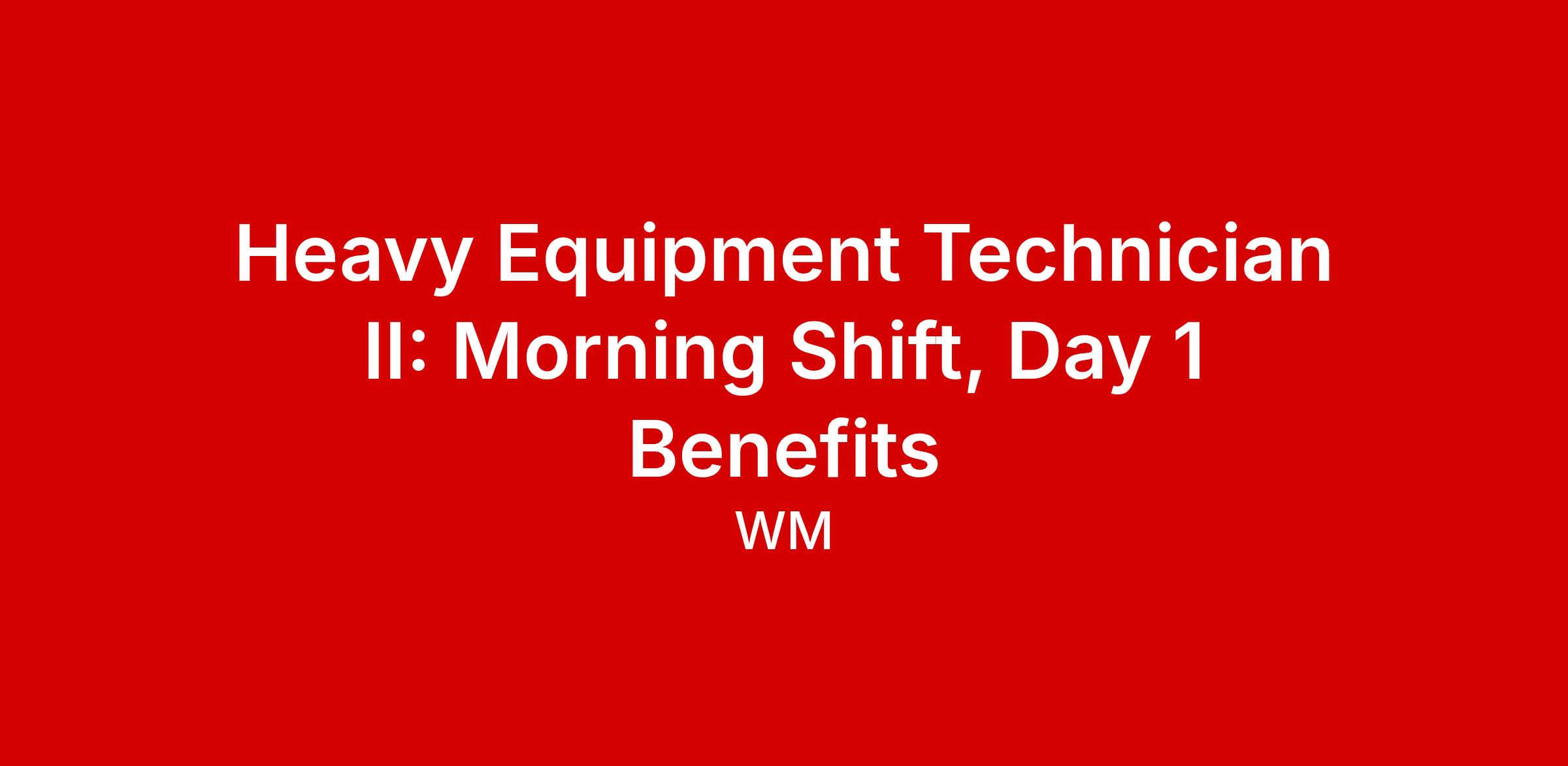 Are you looking for stable work as a Heavy Equipment Mechanic II with benefits that provide financial security for you and your family? Aspiring to advance in your heavy equipment career at a site that prides itself on employee safety? Searching for a company that prioritizes its employees' well-being and understands the importance of family time? If this speaks to you, then WM might be the place for your next career move.