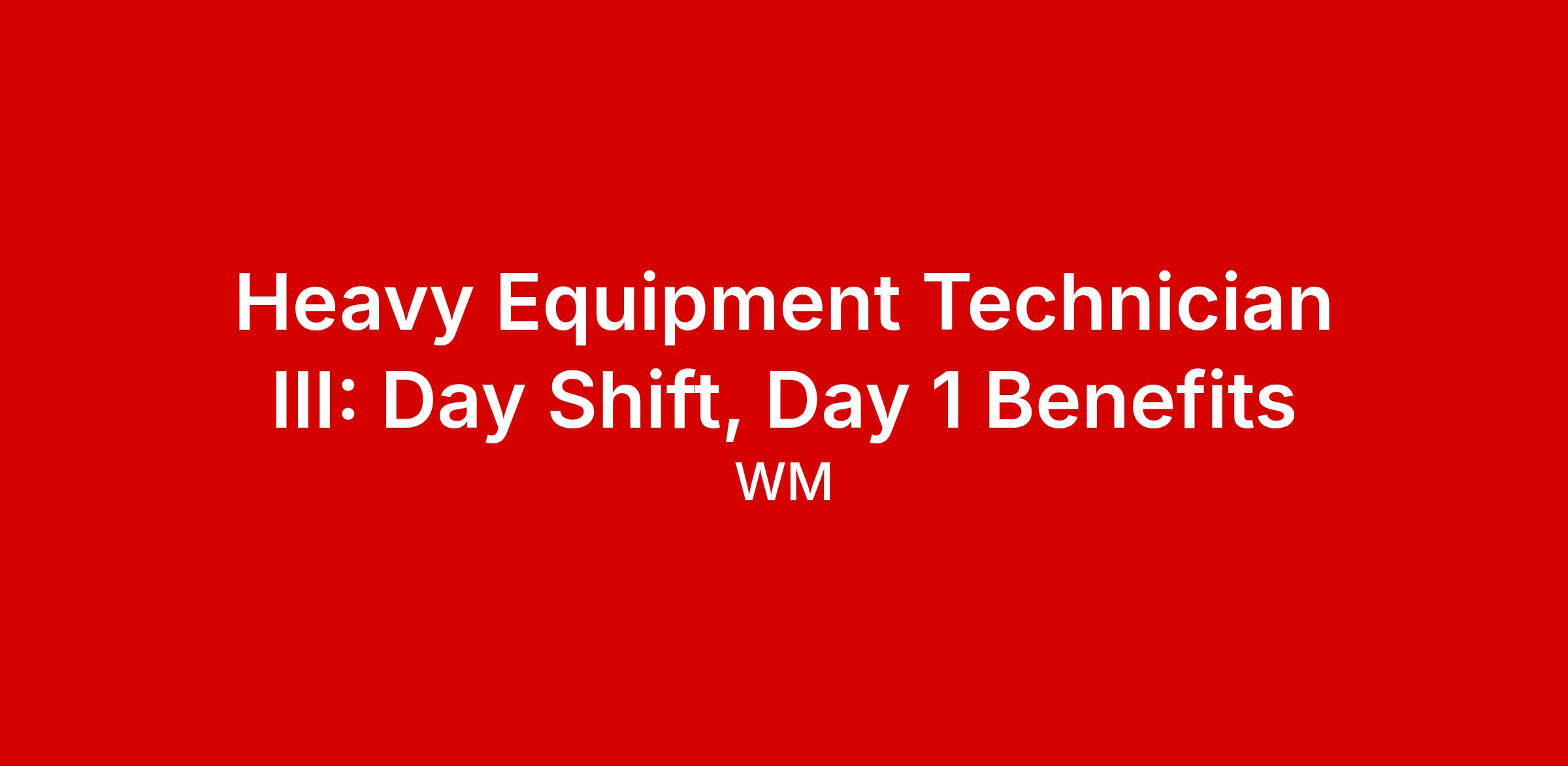 Are you looking for stable work as a Heavy Equipment Mechanic III with benefits that provide financial security for you and your family? Aspiring to advance in your heavy equipment career at a site that prides itself on employee safety? Searching for a company that prioritizes its employees' well-being and understands the importance of family time? If this speaks to you, then WM might be the place for your next career move.