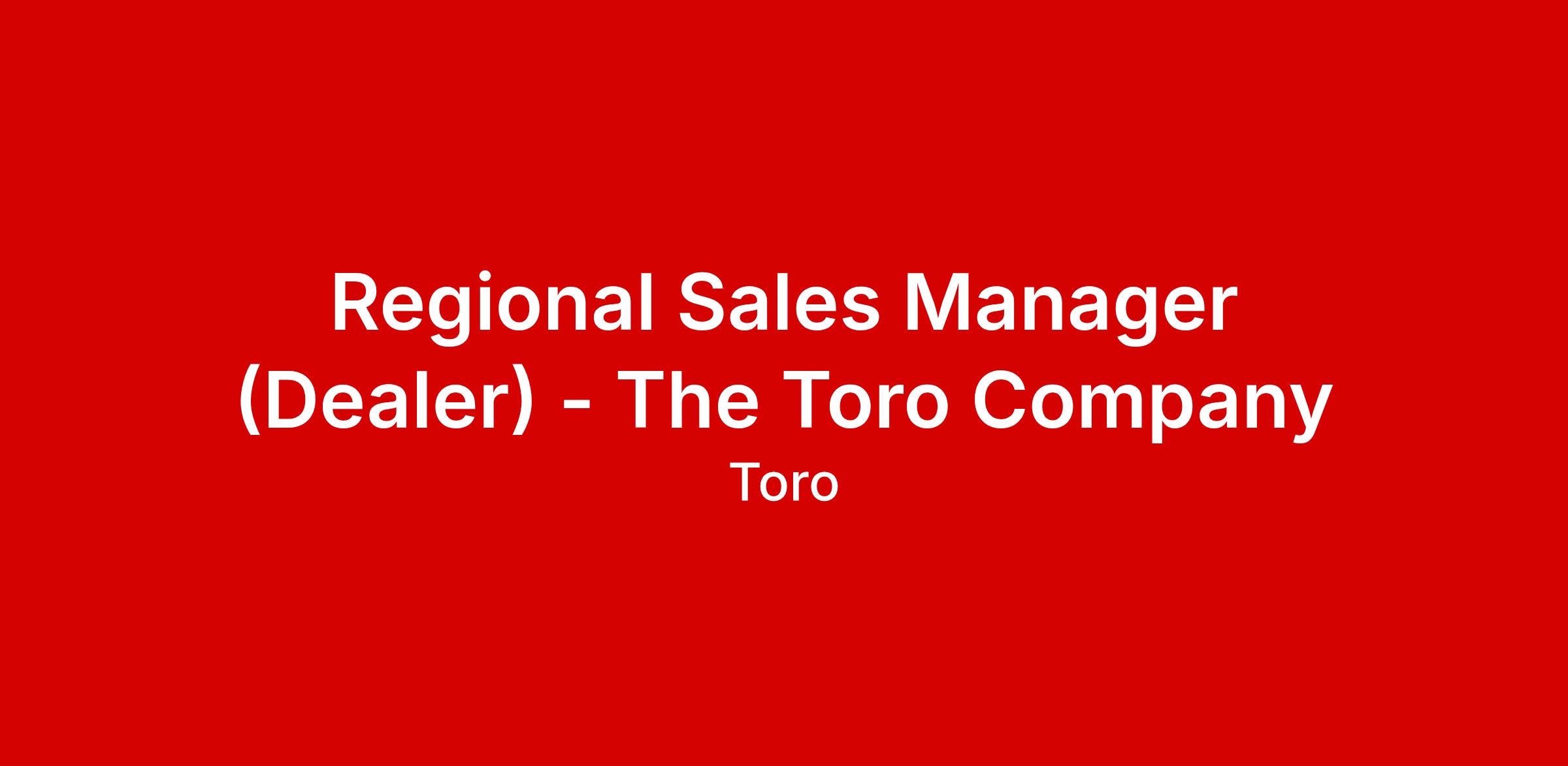 The Sales/Regional Manager is responsible for achieving sales objectives via the distributor / dealer network within the assigned territory. Responsible for improving The Toro Company’s dealer performance and building trusting relationships between Toro and our channel partners. Work collaboratively across the organization to deliver superior customer support and business performance.