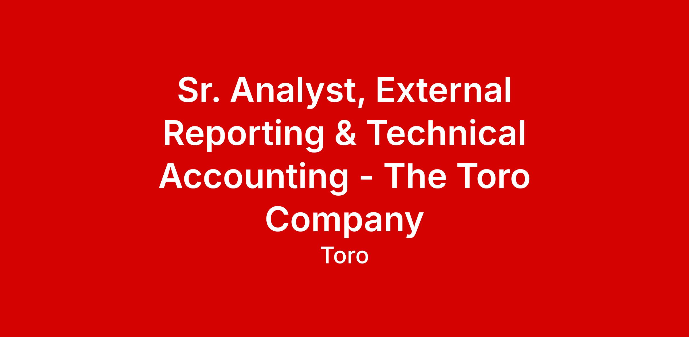As Sr. Analyst, External Reporting, you will collaborate with business partners and finance team members to ensure The Toro Company's (“TTC”) external and technical reports meet US GAAP and SEC standards.
